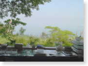 日本庭園には大きな盆栽。あの鉢はどうやって焼いたのかそんなことを考えて